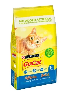 GO-CAT Adult with Tuna, Herring and added Vegetables is 100% complete and balanced, providing him with all the nutrition he needs to keep adding a little sunshine to your life. High quality protein to support muscle tone Essential minerals and vitamin D for healthy teeth and bones Balanced minerals to help maintain urinary tract health Tasty, complete nutrition made by Purina experts